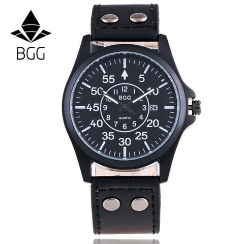 Fashion Men Military Leather Waterproof Analog Date Sport Quartz Wrist Watch