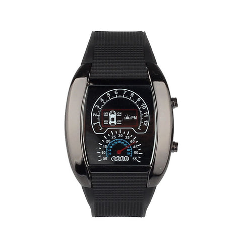 Mens Lady Sports Car Meter Aviation Turbo Dial Flash LED Watch Gift