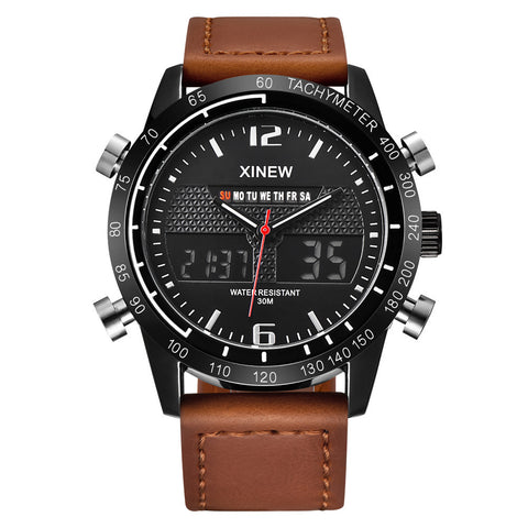 Mens Army Military Watch Waterproof Sports LED Digital Analog Leathe Wrist Watch