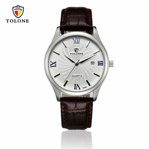 Luxury Men Date Watch Stainless-steel Leather Military Analog-Quartz Watch